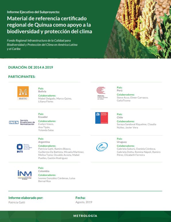 Quinoa is considered a strategic food due to its nutritional properties and its capacity to adapt to climate change. The leaflet illustrates the steps undertaken to develop a certified reference material of this crop which represents an accessible and low-cost option to monitor and promote its production through quality measurements.