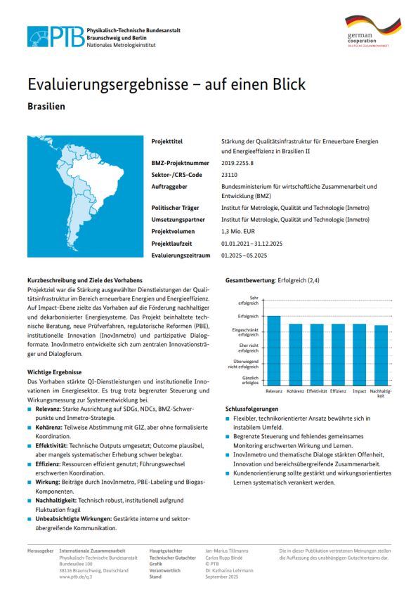 The demand for competent and experience-based advice in the field of quality infrastructure has increased continuously in recent years. PTB International Cooperation has developed numerous formats that address very different target groups. We are pleased to make this offer accessible. Our aim is to impart knowledge about quality infrastructure and to improve the corresponding services in such a way that they are competitive, support the economy and promote trade. Environmental and health aspects are included in the holistic approach. Enjoy browsing.