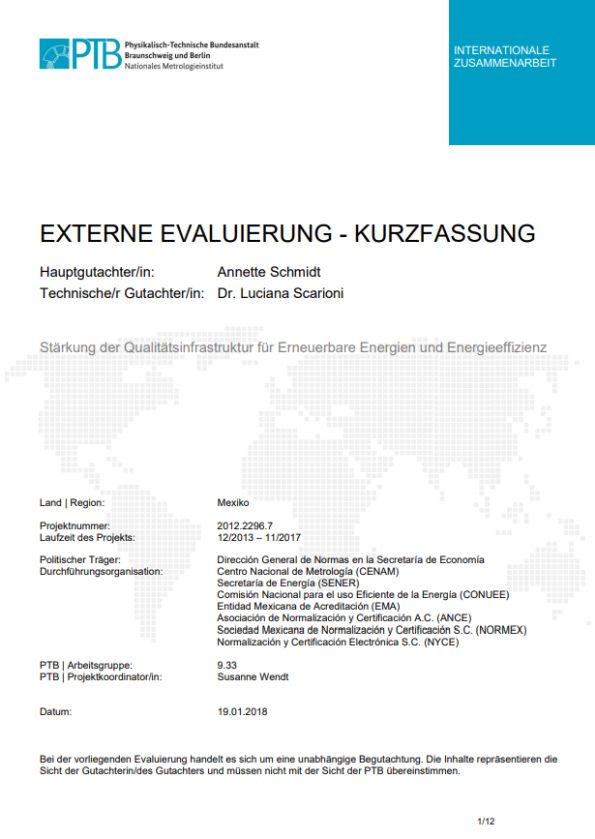 The project supports quality infrastructure institutions in providing renewable energy and energy efficiency services in accordance with the national energy policy. This includes different fields of action such as quality assurance of photovoltaic installations, metrological support for energy quality determination and the establishment of a specialized unit in the Centro Nacional de Metrología (CENAM).