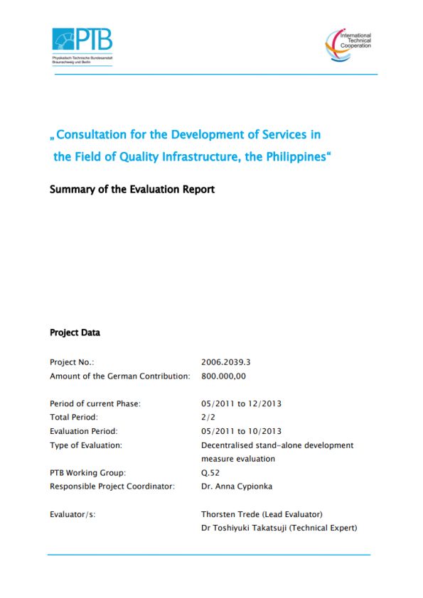 The objective of the project is to develop a functional concept for Philippine quality infrastructure (QI) so that efficient and demand-oriented services can be offered in the field of metrology and accreditation.