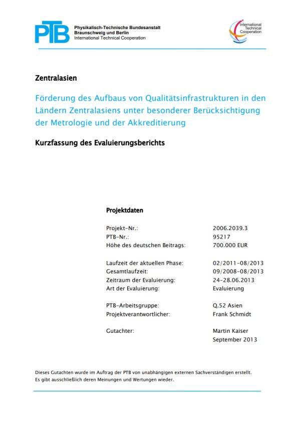 The project objective is the international recognition of the metrology institutions and accreditation of the countries of Central Asia and their services. For this purpose, adapted information and knowledge shall be made available for all countries at the national level. In parallel, an exchange and information platform is to be set up at the regional level to highlight good practices and encourage imitation. This focuses especially on control authorities for providers of services for the private sector.