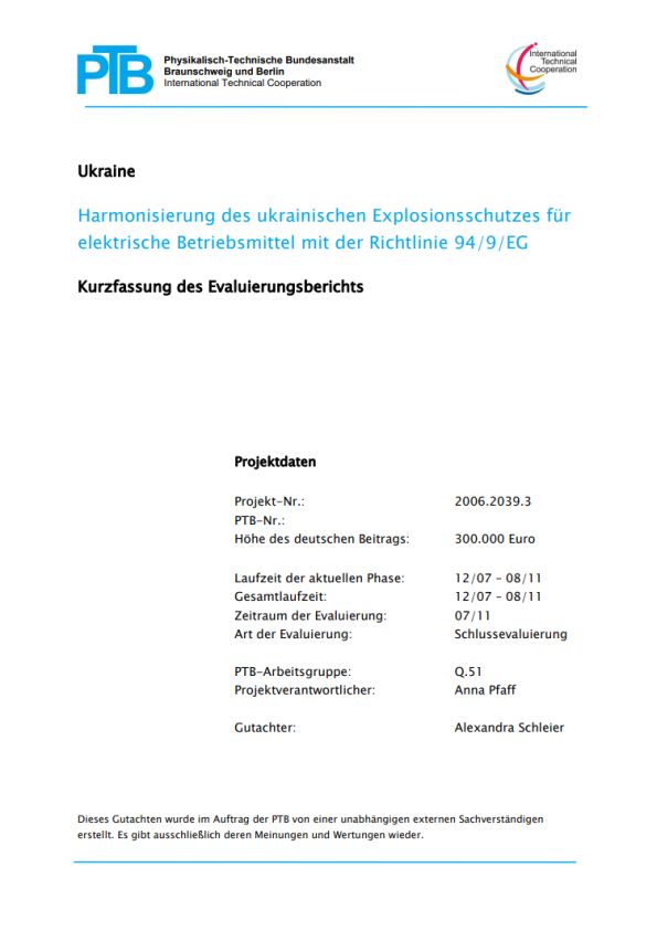 The goal of the project is to build up testing capacities at the Ukrainian testing centre for equipment used in potentially explosive settings. Another objective is the conversion of the processes at the Ukrainian testing and certification body. The legal basis will also be changed to achieve this.